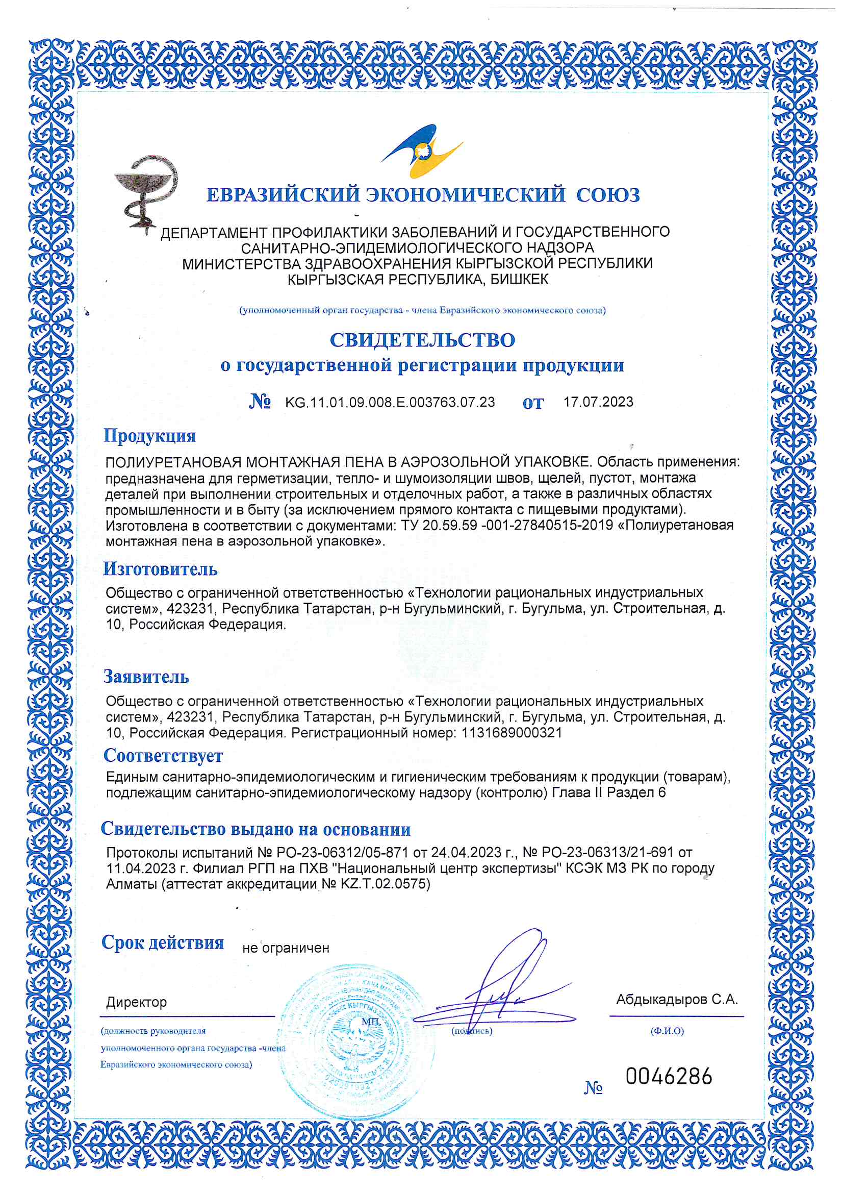 Уплотнитель самоклеящийся KRASS для окон и дверей E10 - Экспертное заключение.pdf