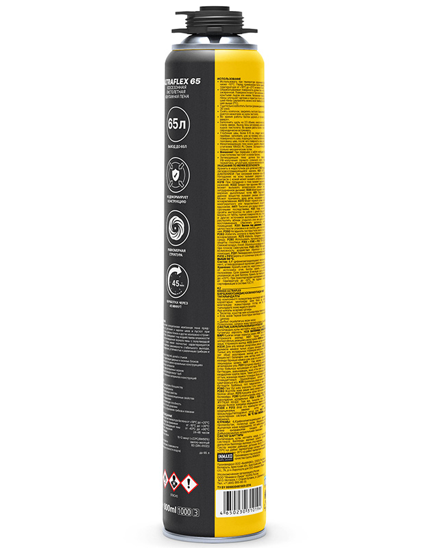 Тщательно встряхнуть баллон не менее 15 раз в течение 30 секунд. Прикрутить баллон к пистолету для пены. Рабочее положение баллона "ДНОМ ВВЕРХ". Не заполнять монтажные швы полностью – пена увеличится в объеме.